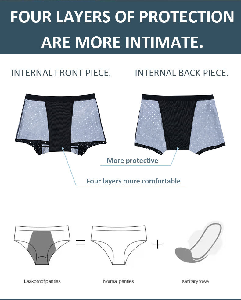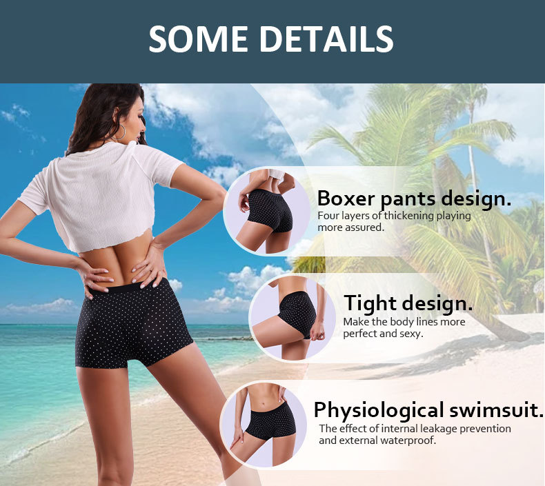 Roupa íntima fisiológica europeia e americana, absorvente higiênico à prova de vazamentos de quatro camadas, calças menstruais, calções de banho, calças fisiológicas, cuecas boxer femininas